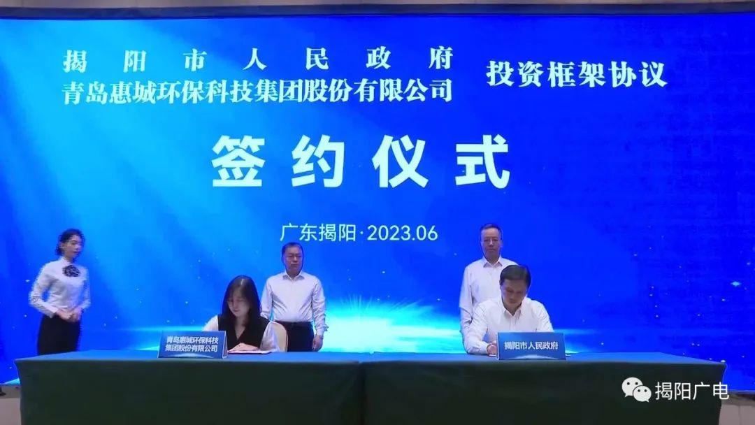 6月18日,揭陽市人民政府與青島惠城環(huán)保科技集團股份有限公司在揭陽市區(qū)簽署投資框架協(xié)議。[ 查看更多 ]