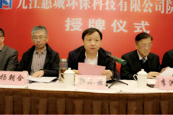 活動伊始,瑞昌市委書記郭小云代表瑞昌市委、市政府向蒞臨此次授牌儀式的各位領導和專家表示歡迎,他提出,希望九江惠城環(huán)保科技有限公司能借助院士工作站這一創(chuàng)新平臺,不斷提高科研能力和創(chuàng)新水平,著力把企業(yè)做大、做優(yōu)、做強。瑞昌市委、市政府也會積極為企業(yè)、為院士工作站開展工作提供優(yōu)質(zhì)服務、創(chuàng)造良好條件、營造更好環(huán)境。