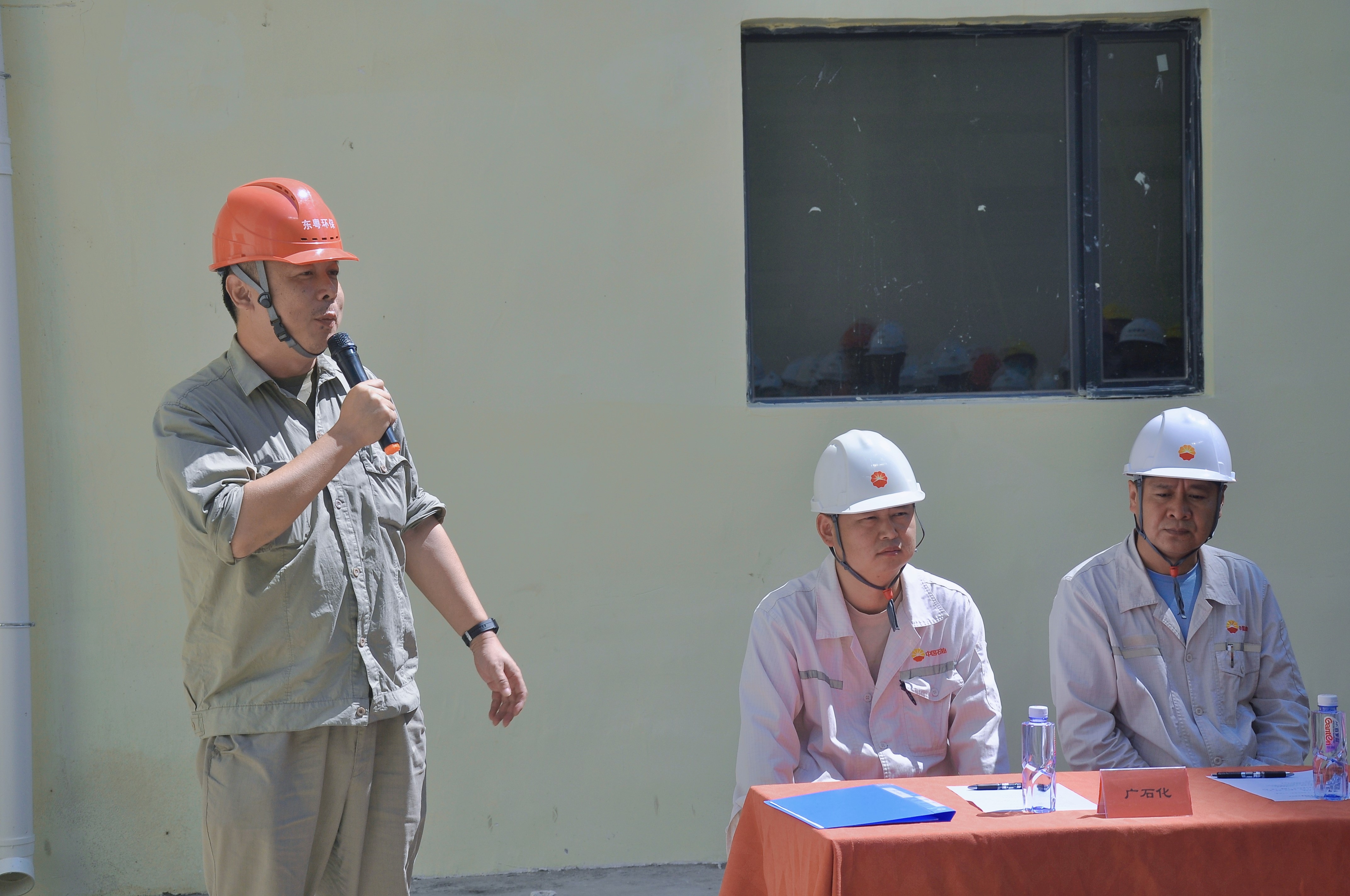 2022年9月15日上午十時許,在熱烈的掌聲中,廣東東粵環(huán)?萍加邢薰臼徒怪茪浠以C合利用項目前端裝置中交儀式在POX裝置區(qū)域隆重舉行。廣東石化工程管理部婁秀偉、趙兵團,中化四建項目經理袁清溪,廣州石化監(jiān)理公司總監(jiān)席戰(zhàn)峰以及東粵環(huán)?偨浝砝疃魅、總工程師吳聿列席參加。
