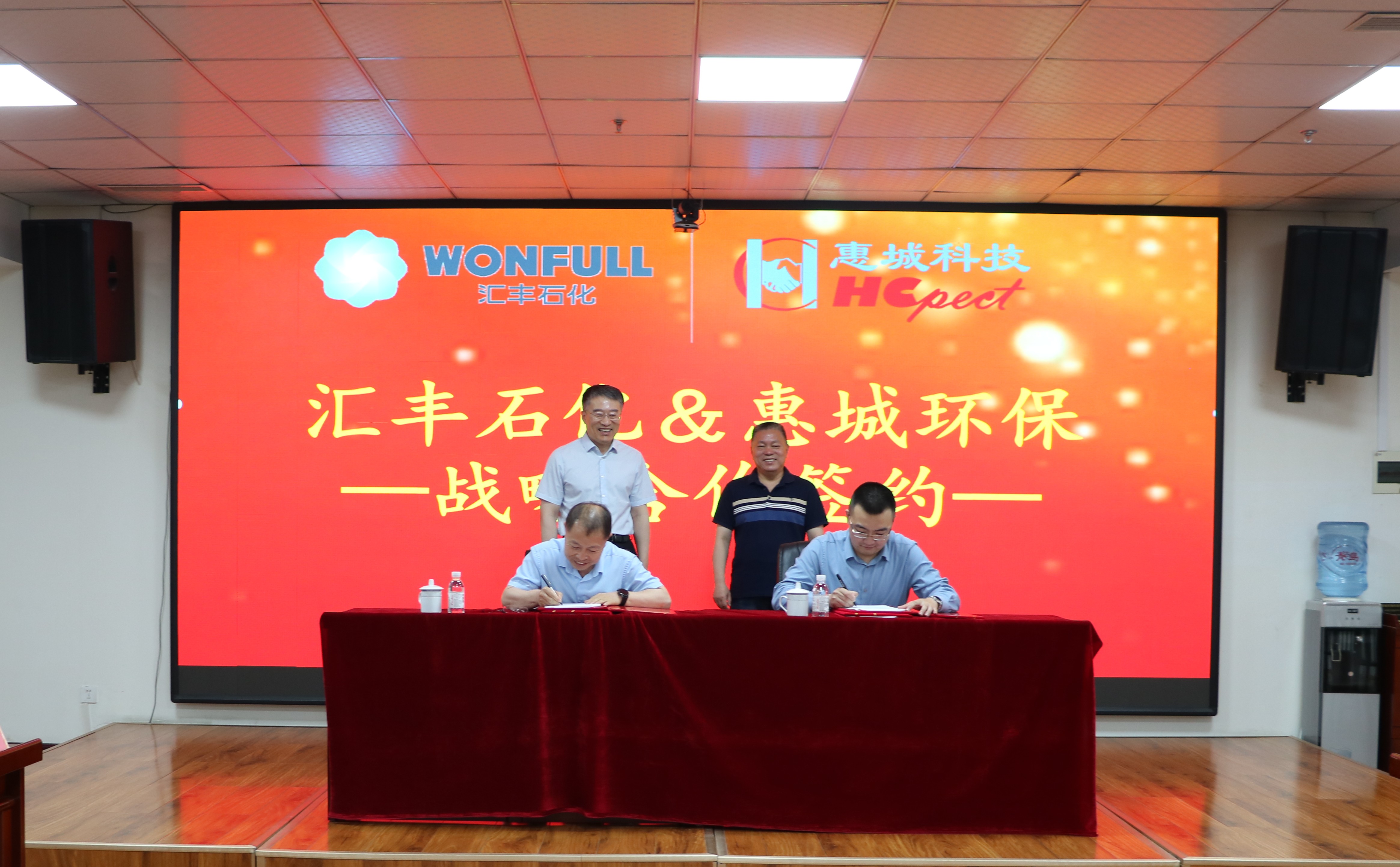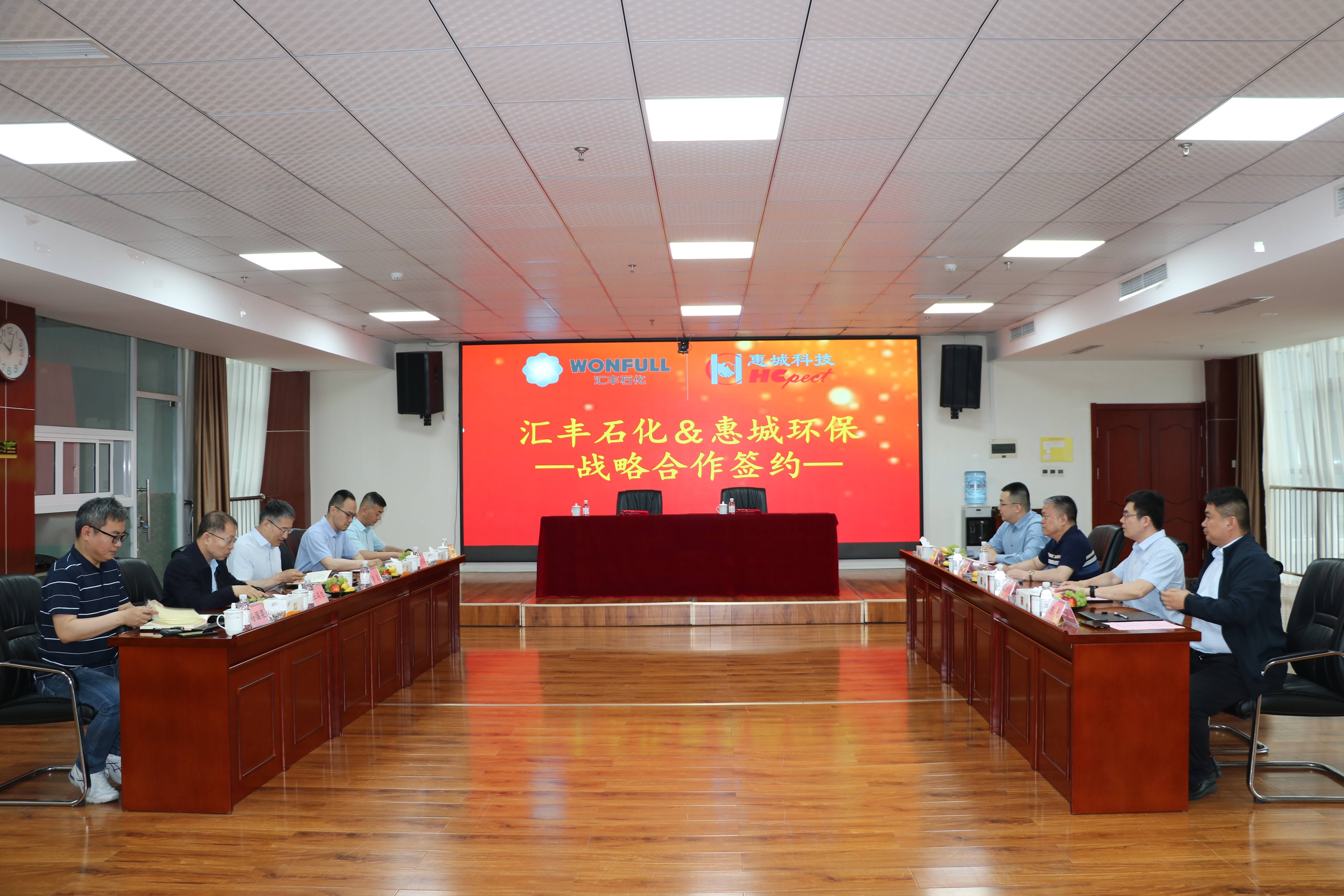 為進(jìn)一步推動綠色循環(huán)經(jīng)濟(jì)高質(zhì)量可持續(xù)發(fā)展,加快先進(jìn)環(huán)保技術(shù)成果轉(zhuǎn)化落地,5月18日,青島惠城環(huán)?萍技瘓F(tuán)股份有限公司(以下簡稱“惠城環(huán)!保┡c山東匯豐石化集團(tuán)有限公司(以下簡稱“匯豐石化”)戰(zhàn)略合作簽約儀式在惠城環(huán)保研發(fā)大樓418會議室隆重舉行。匯豐石化總裁李波、總工程師王瑞旭,惠城環(huán)保創(chuàng)始人張新功、總經(jīng)理林瀚等出席簽約儀式。
