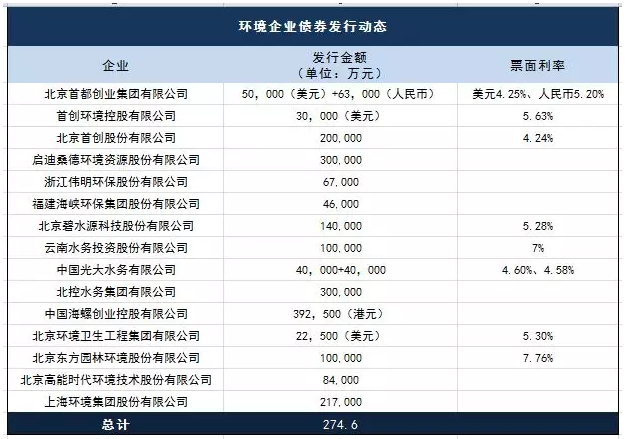 對(duì)于環(huán)境企業(yè)而言,發(fā)行債券是一種常見的融資手段,據(jù)不完全統(tǒng)計(jì),2018年以來,環(huán)保上市企業(yè)的債券發(fā)行規(guī)模至少達(dá)到274.6億元人民幣。