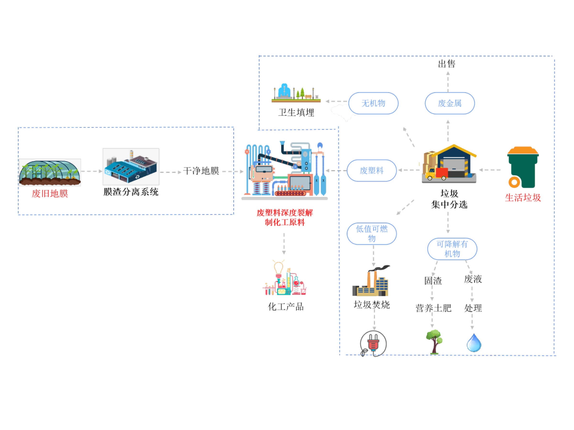 垃圾集中機(jī)械化自動分選技術(shù)由惠城環(huán)保技術(shù)團(tuán)隊自主研發(fā),更注重的是垃圾中端的處理,因為末端的處理方式只能是填埋焚燒。通過精細(xì)化集約式的高效分選體系,將生產(chǎn)、生活中的廢塑料全量回收再利用,可將金屬、無機(jī)物、有機(jī)液和低值混合可燃物進(jìn)行一次性分離,分選獲得的物料,部分可直接作為產(chǎn)品進(jìn)行出售,其他高值化垃圾可經(jīng)過其他手段重新加工為合格的再循環(huán)利用產(chǎn)品;再對低值的塑料進(jìn)行二次精分,經(jīng)過惠城環(huán)保自主研發(fā)的另一項創(chuàng)新技術(shù)——混合廢塑料深度催化裂解(CPDCC)技術(shù)可轉(zhuǎn)化為高清潔化工原料,構(gòu)成了廢塑料全閉環(huán)的產(chǎn)業(yè)鏈條。