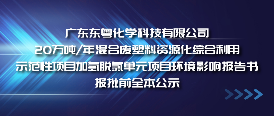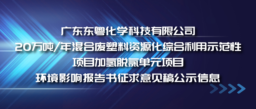 廣東東粵化學(xué)科技有限公司擬報(bào)批《廣東東粵化學(xué)科技有限公司20萬噸/年混合廢塑料資源化綜合利用示范性項(xiàng)目加氫脫氯單元項(xiàng)目環(huán)境影響報(bào)告書》。根據(jù)《中華人民共和國(guó)環(huán)境影響評(píng)價(jià)法》《環(huán)境影響評(píng)價(jià)公眾參與辦法》(生態(tài)環(huán)境部令 第4號(hào))的有關(guān)規(guī)定,為了方便公眾查閱,現(xiàn)予公開擬報(bào)批的環(huán)境影響報(bào)告書全文和公眾參與說明。[ 查看更多 ]